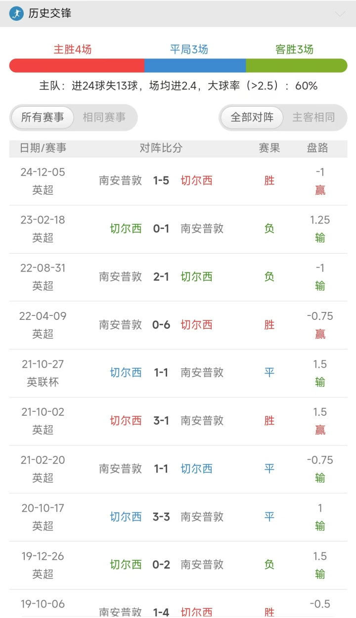 那么本场比赛这个预测,个人是看好切尔西是能够在主场中以一个大胜的一个优势战胜客场挑战了南安普顿,方向的话,就走一个让3。