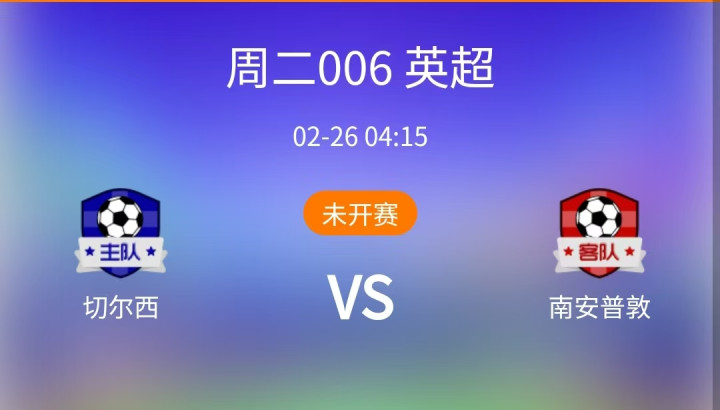 今日赛事:切尔西vs南安普敦